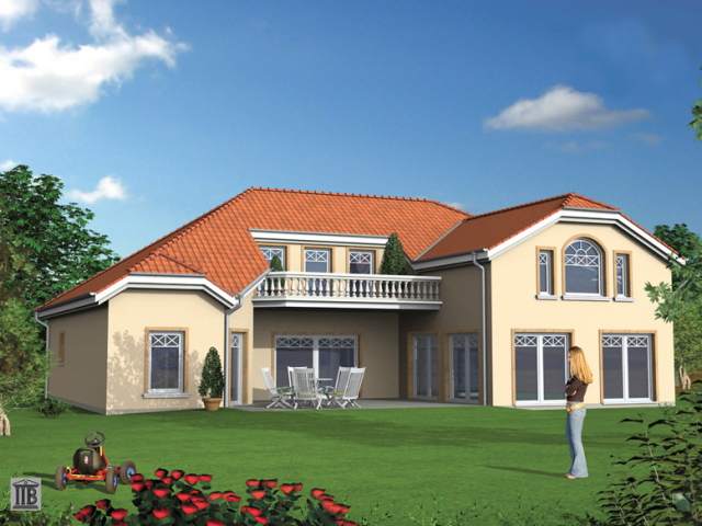 Ein exklusives Einfamilienhaus, dessen Äußeres mit den Säulenarkaden und dem Erker den Besucher regelrecht zum Eintreten zwingt.